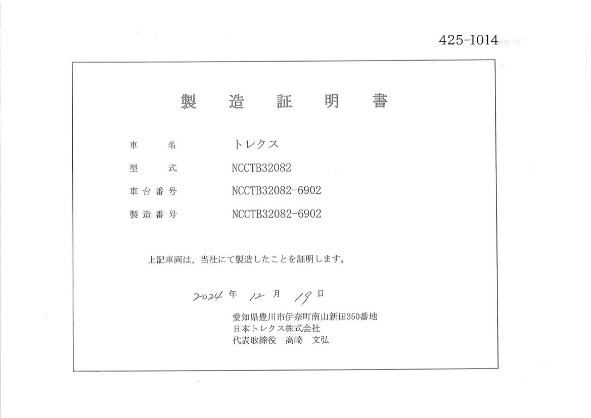 | 車両形式 | -NCCTB32082 | エンジン馬力 | 0PS |