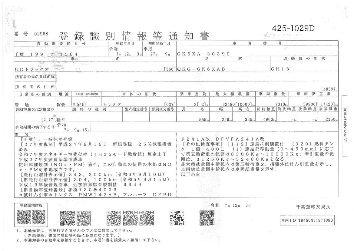 お問い合わせ番号:425-1029D| クラス(車両) | 大型 | メーカー | 日産 |
