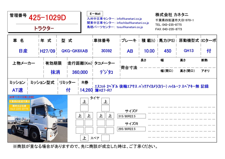 | 形状 | トラクター | 年式 | H27/09 |