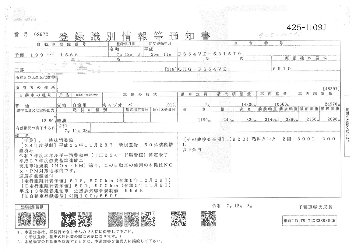 お問い合わせ番号:425-1109J| クラス(車両) | 大型 | メーカー | 三菱 |