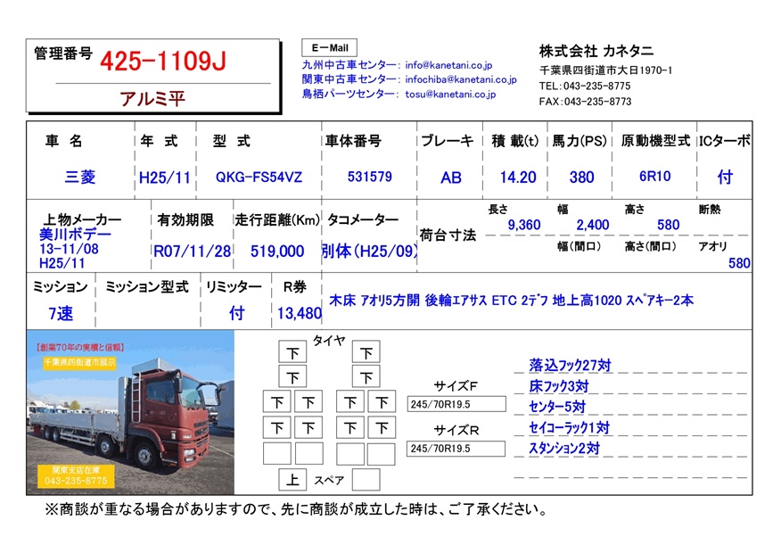 | 形状 | アルミ平 | 年式 | H25/11 |