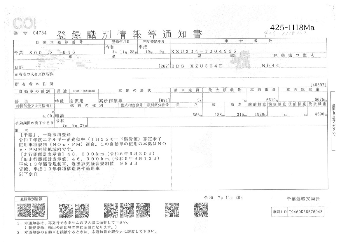 | 備考 | 屈折15.7m 標準 アドブル無 記録簿R6-R7 ETC |