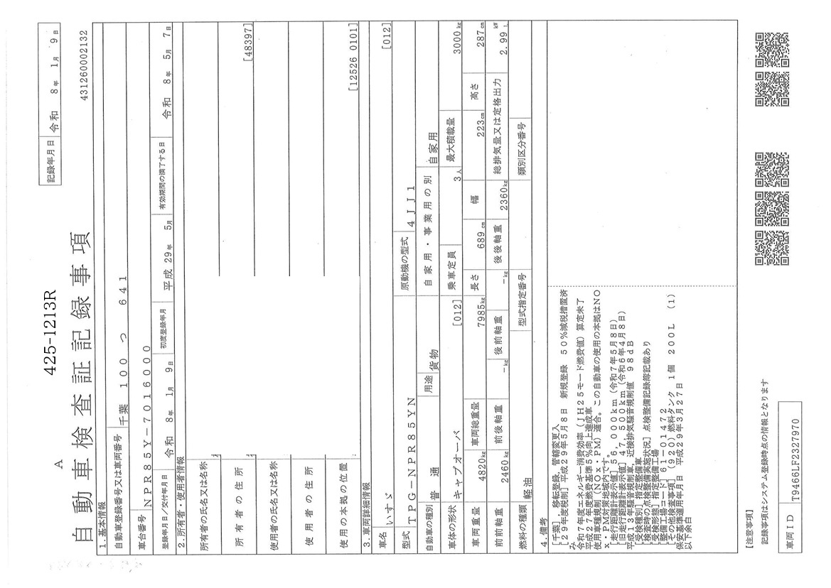 | 車両形式 | TPG-NPR85YN | エンジン馬力 | 150PS |