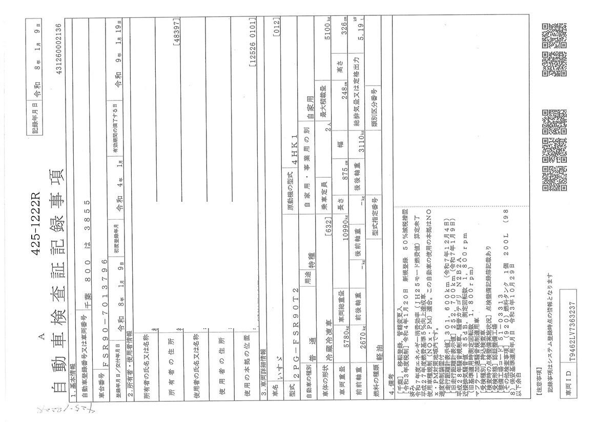 | 車検期限 | R09/01/19 | 走行距離 | 303,000Km |