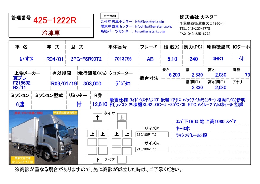 | 形状 | 冷凍車 | 年式 | R04/01 |
