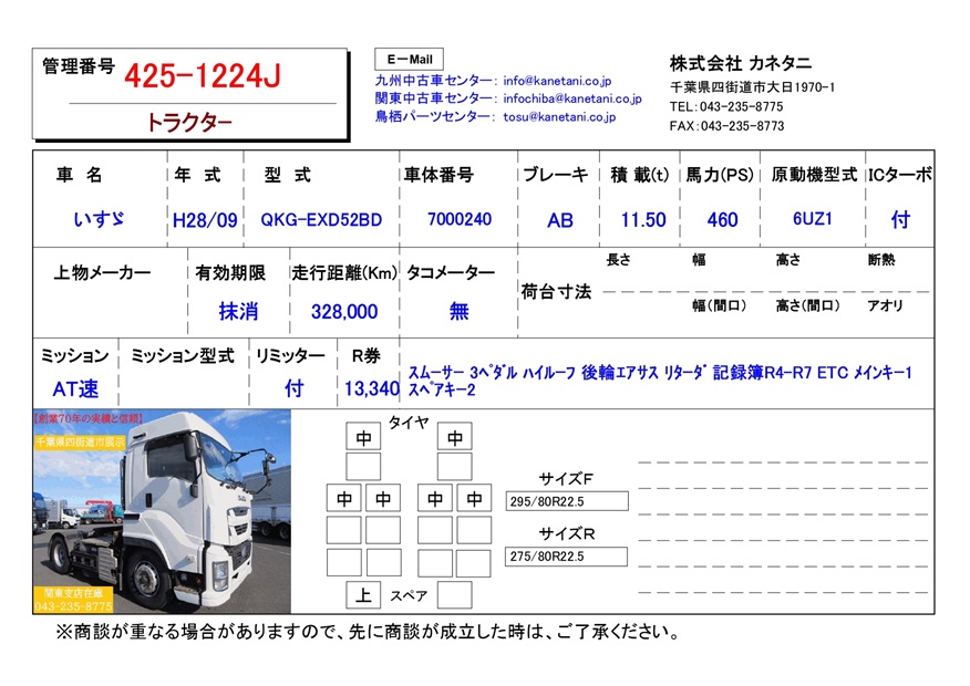 | 前輪サイズ | 295/80R22.5 | ||