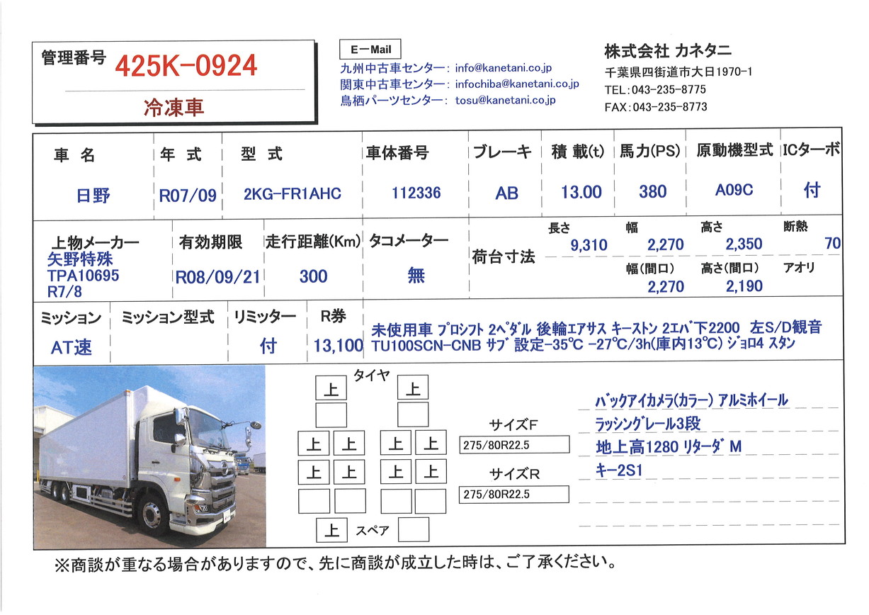 | 形状 | 冷凍車 | 年式 | R07/09 |