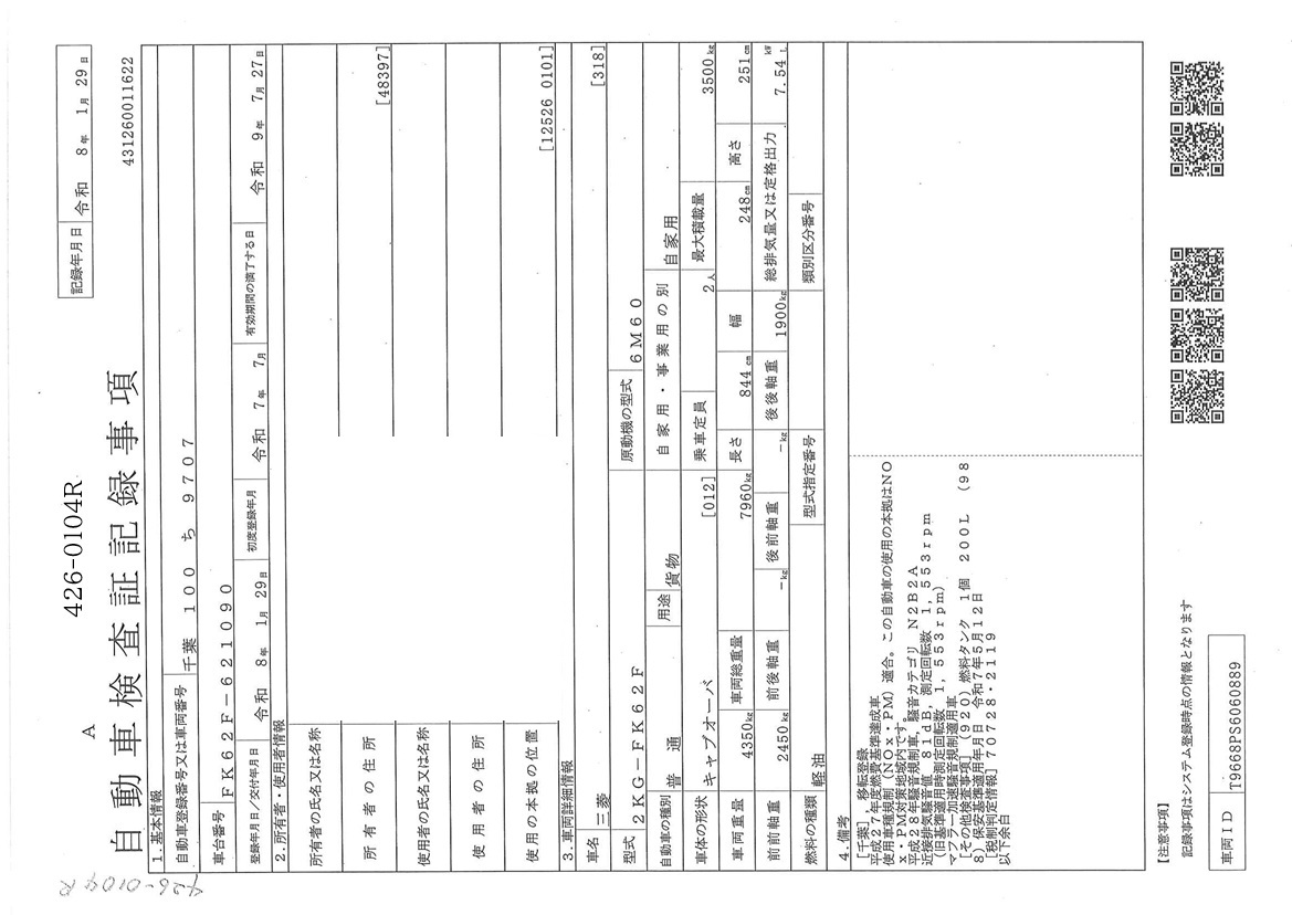 お問い合わせ番号:426-0104R| クラス(車両) | 中型 | メーカー | 三菱 |