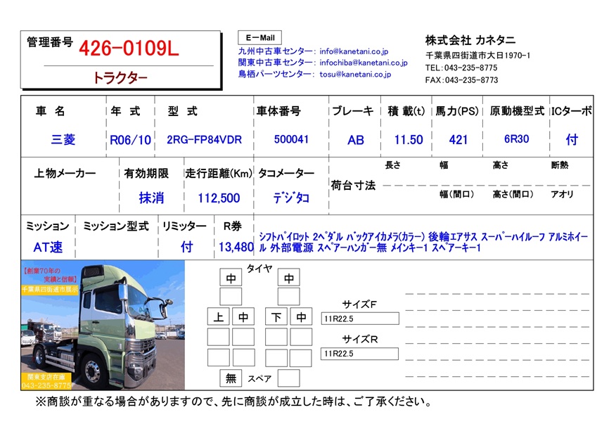 | 形状 | トラクター | 年式 | R06/10 |