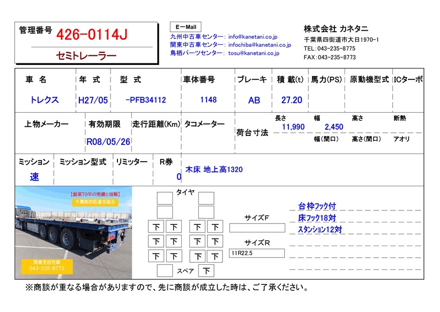 | 形状 | セミトレーラー | 年式 | H27/05 |
