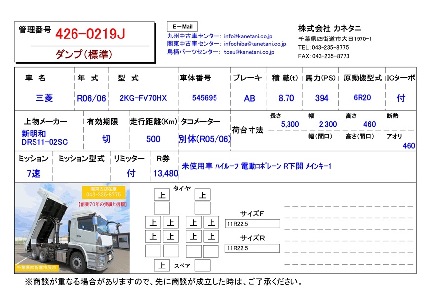 | 形状 | ダンプ(標準) | 年式 | R06/06 |