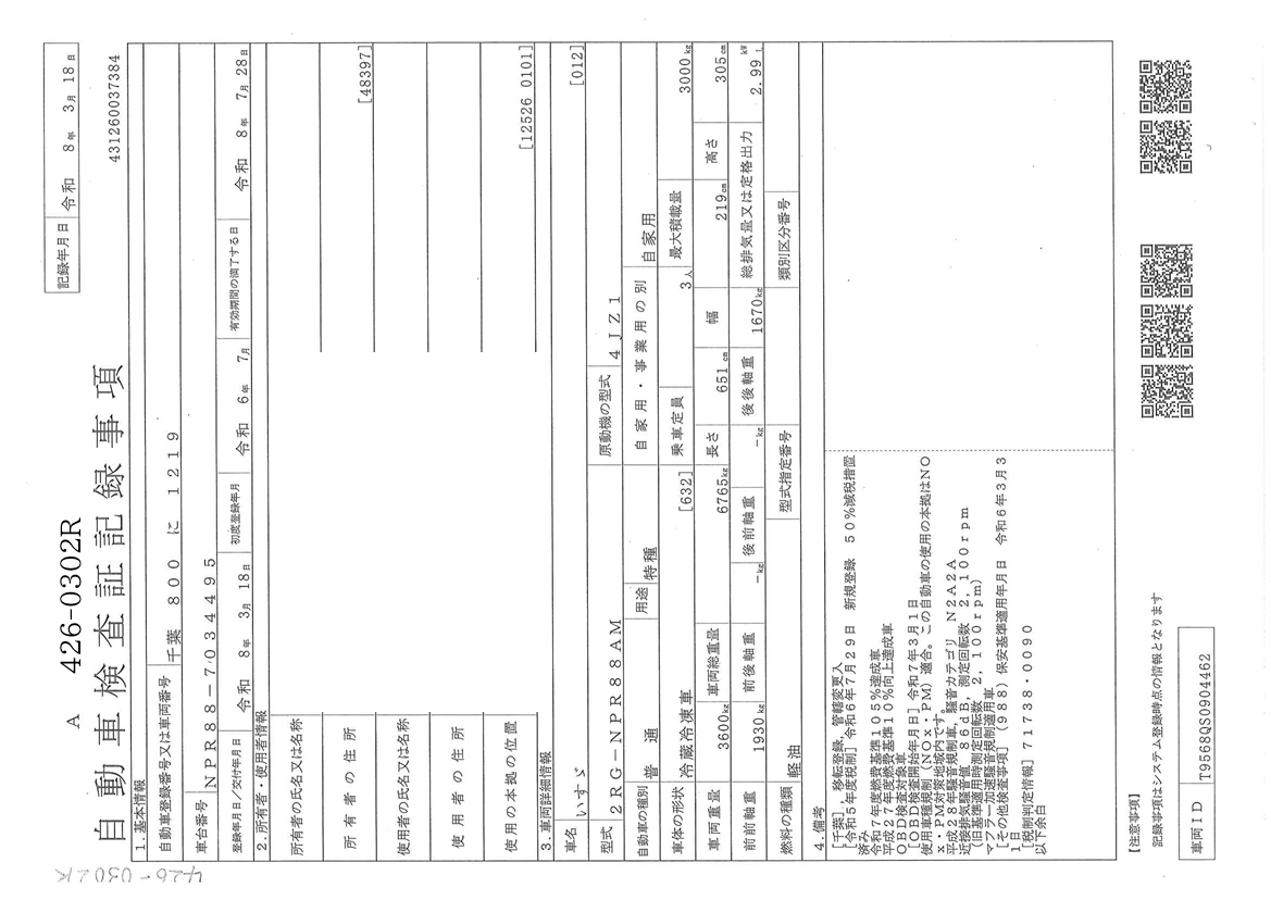 お問い合わせ番号:426-0302R| クラス(車両) | 小型 | メーカー | いすゞ |